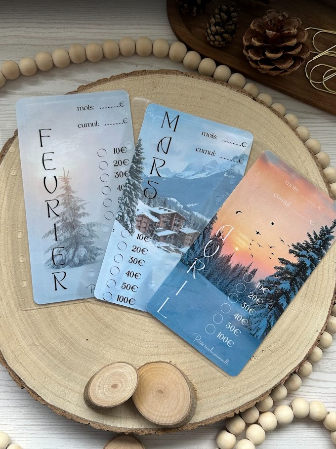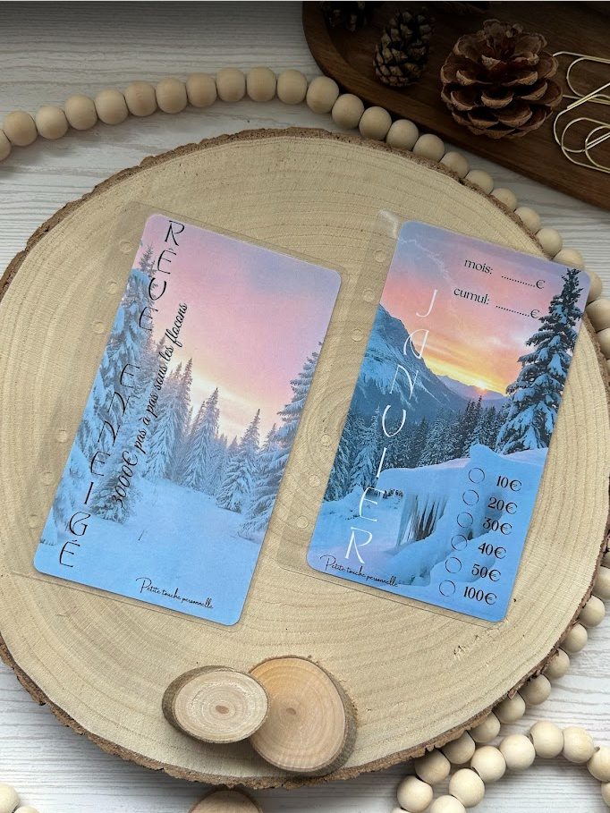Challenge annuel “Rêve enneigé” ❄️ – 12 trackers A6 pour économiser pas à pas et réaliser tes projets