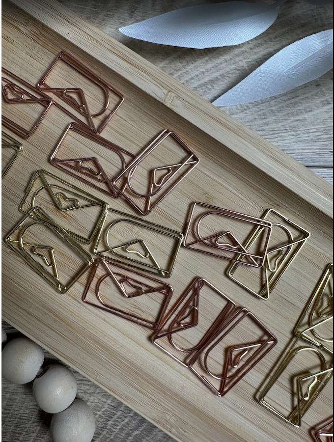 Lot de 2 trombones fantaisie enveloppe – finition or ou rose gold – Accessoire décoratif pour classeur budget et papeterie (Copie)