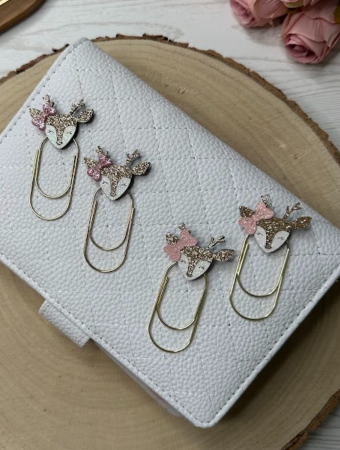 Ces grands trombones décoratifs en forme de biche pailletée, ornés d’un nœud rose, sont parfaits pour embellir vos pages, enveloppes budgétaires ou votre classeur. Doux et scintillants, ils ajoutent poésie et élégance à votre organisation.