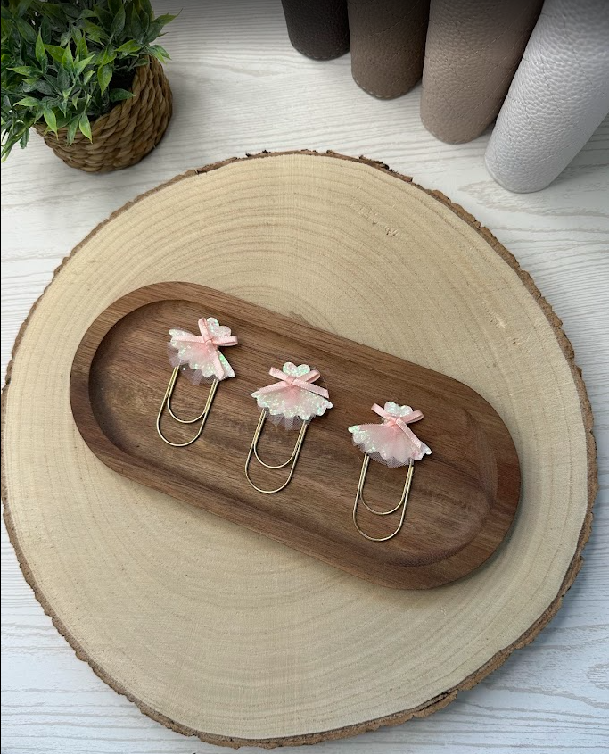 Trombone fantaisie robe tutu rose pailleté – Accessoire décoratif pour classeur budget, agenda ou papeterie créative